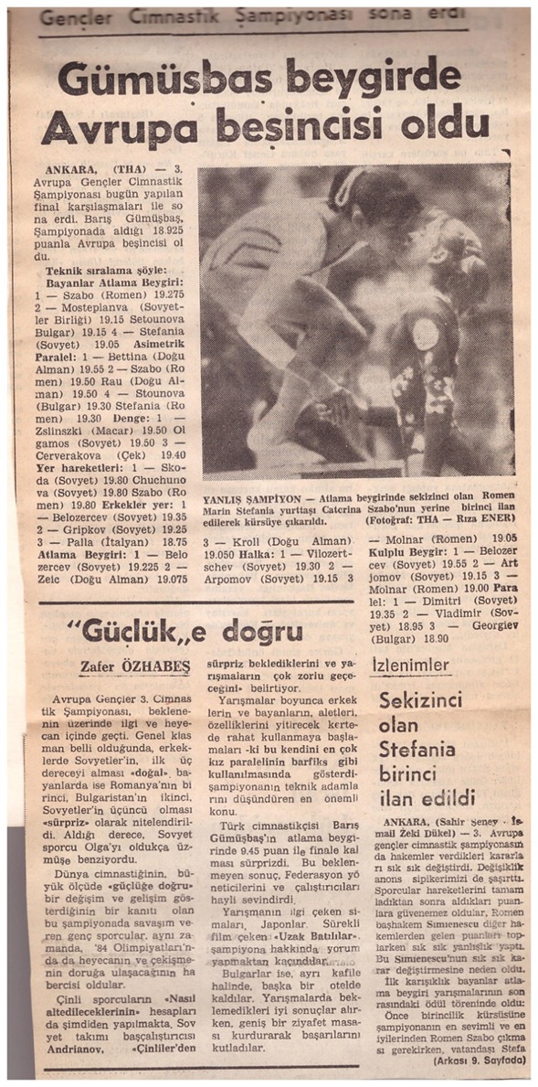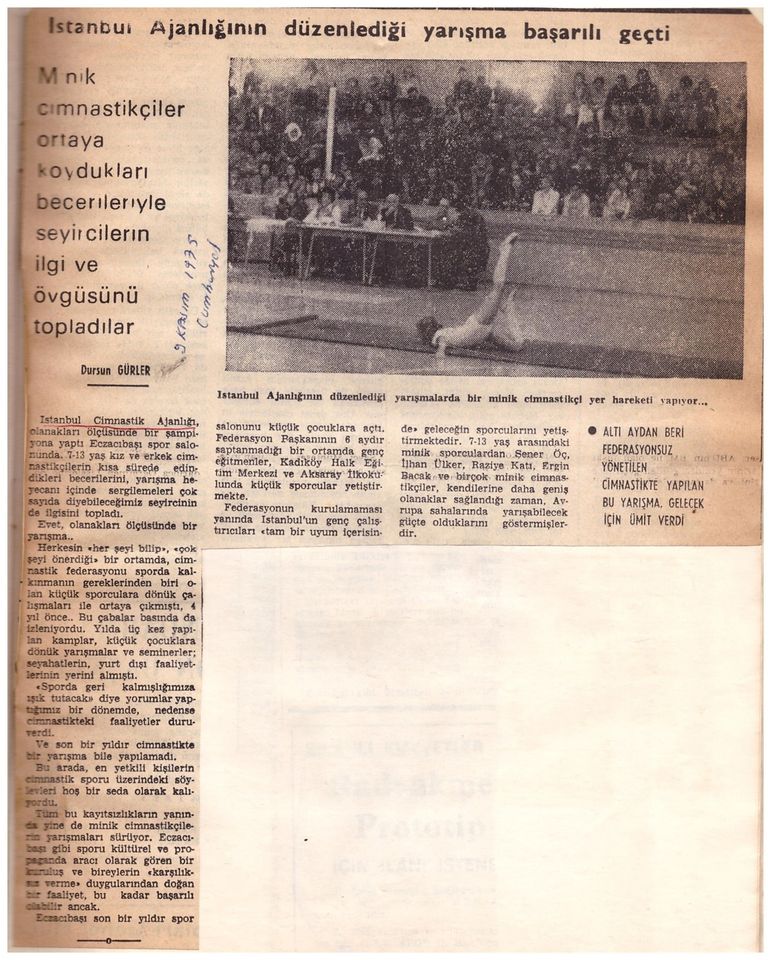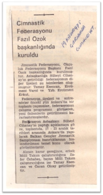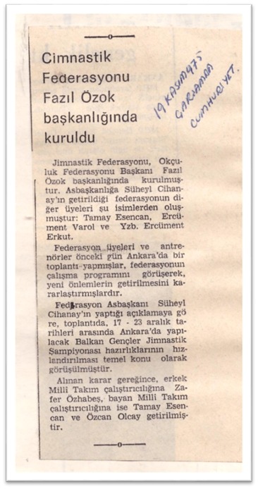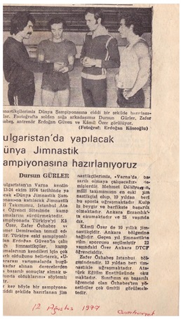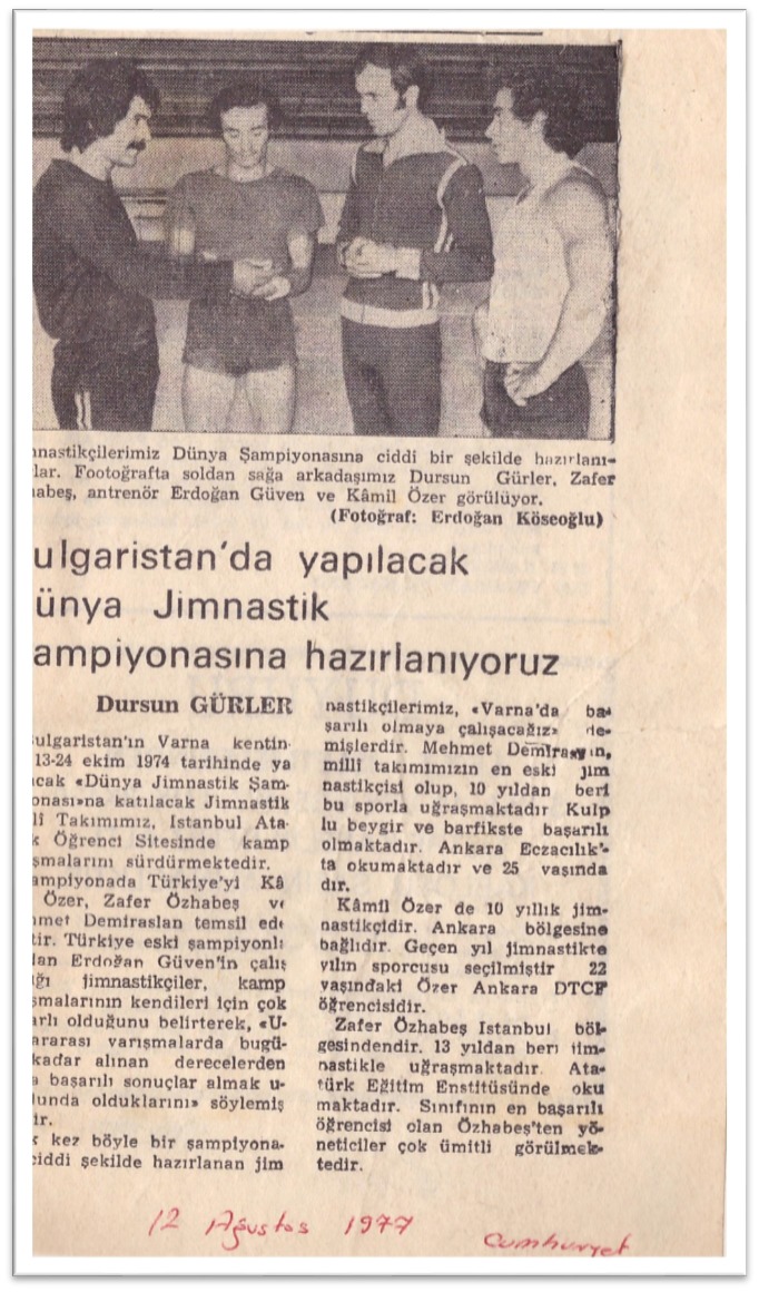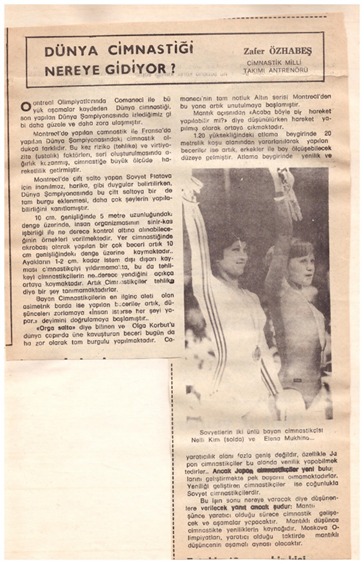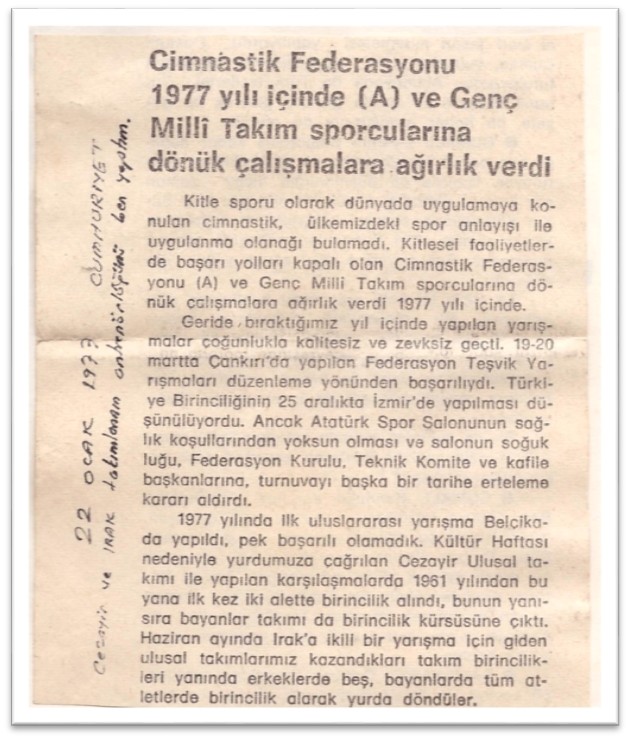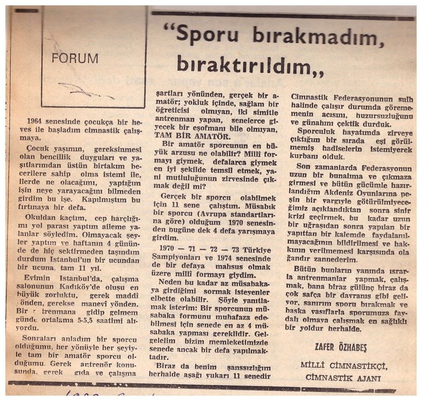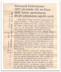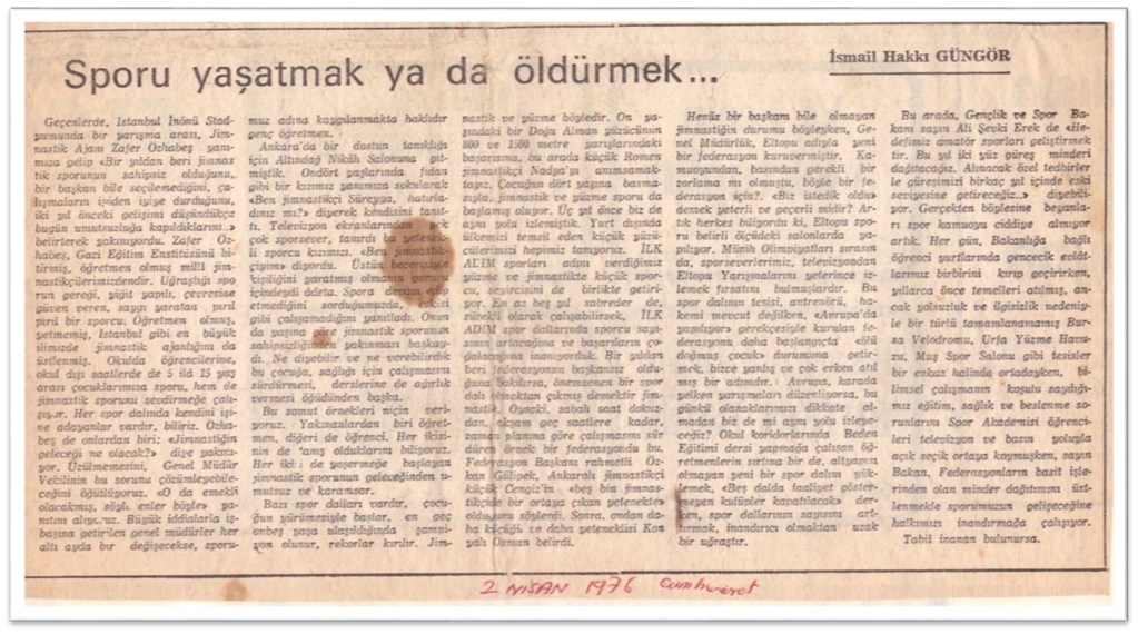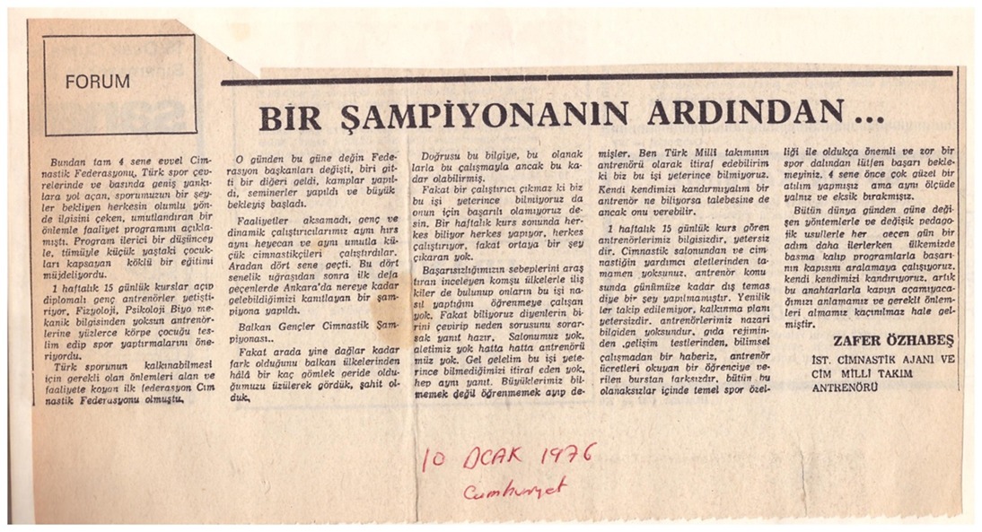 Balkan Gençler cimnastik Şampiyonasının ardında yazdığım bir Forum yazısında kendi durumumuzu açıkça ortaya koydum. Yazı 10 Ocak 1976 Cumhuriyet .