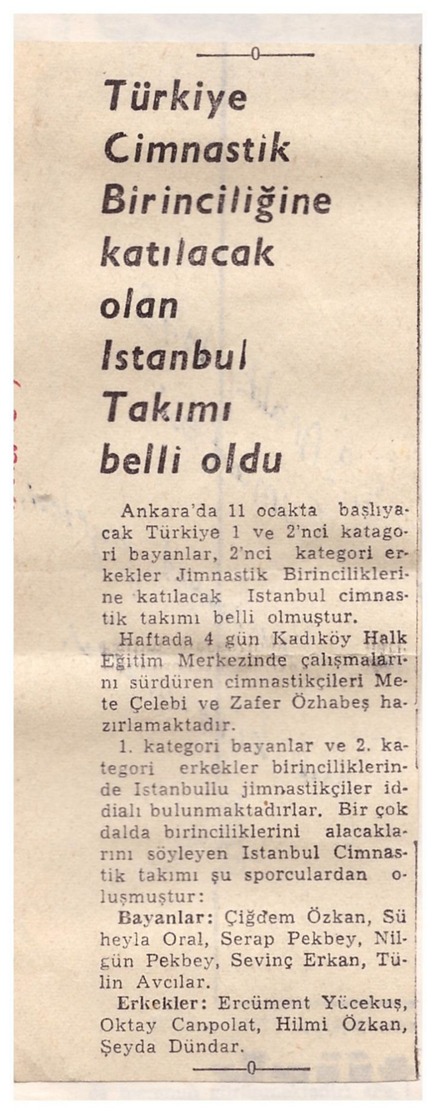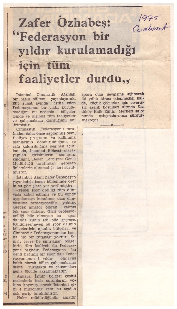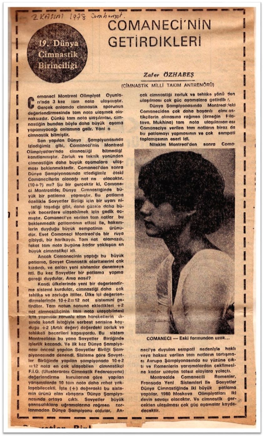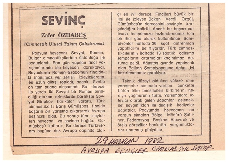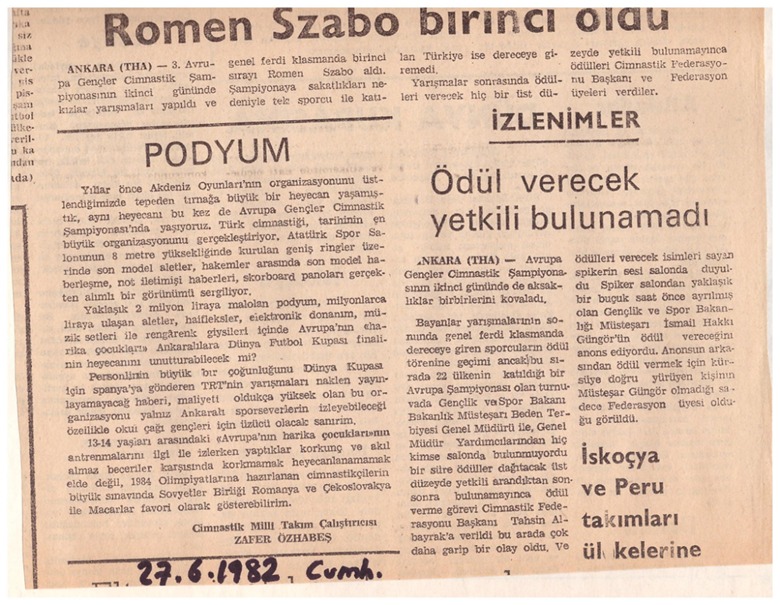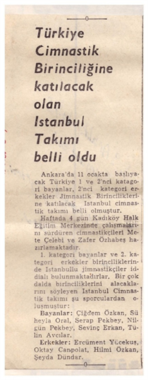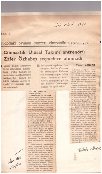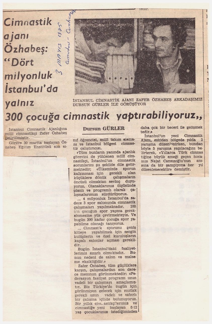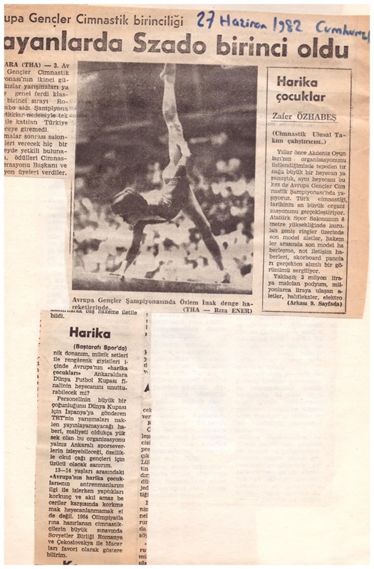Balkan Gençler cimnastik Şampiyonasının ardında yazdığım bir Forum yazısında kendi durumumuzu açıkça ortaya koydum. Yazı 10 Ocak 1976 Cumhuriyet .
