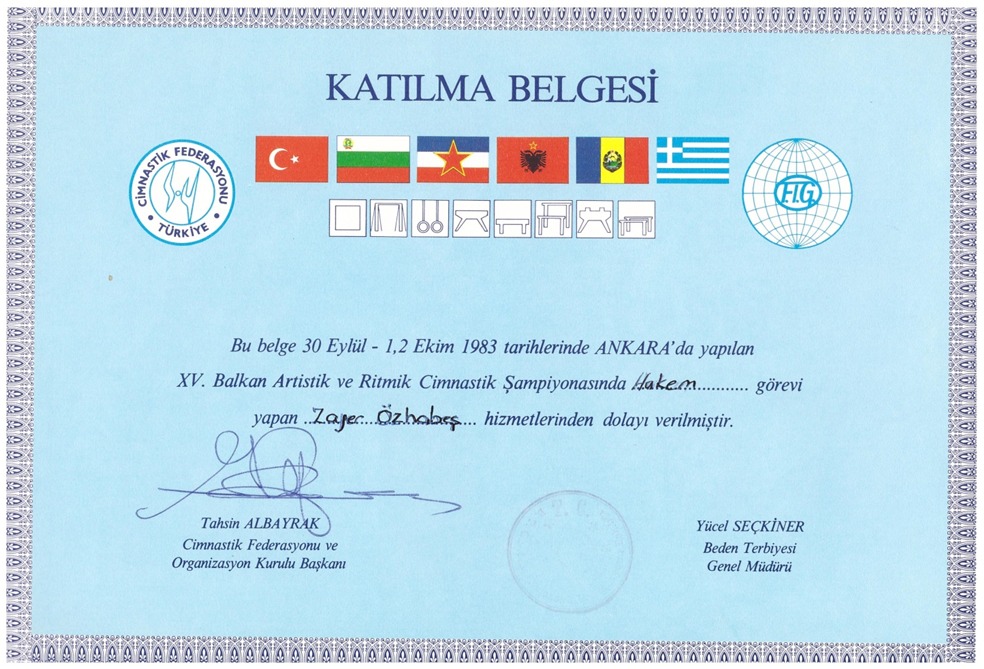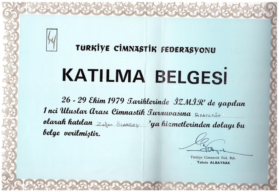 26-29 Ekim 1979 tarihlerinde İzmirde yapılan Birinci Uluslararası Cimnastik Turnuvasında Antrenör olarak görev yaptım, bu turnuva zaten bir daha yapılmadı .