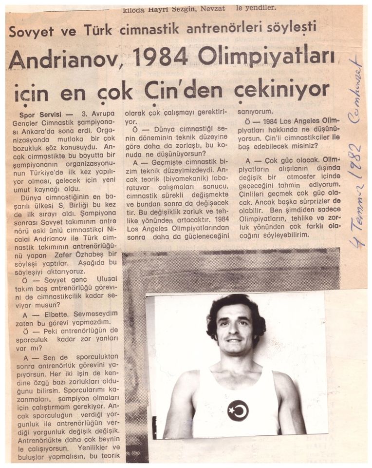 SOVYET VE TÜRK CİMNASTİK ANTRENÖRLERİ SÖYLEŞTİ. ( Altta yayınlanan gazete kupürü)