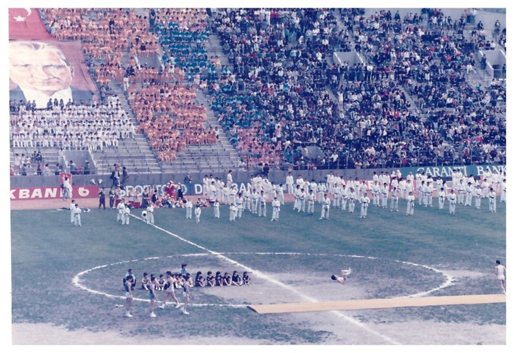 Şampiyona dönüşü Bakanlığın görevlendirmesi ve bir projesi nedeniyle, Gazi Üniversitesinden ve bakanlıktan benim de katılmamla 8 kişilik komisyon halinde 19 Mayıs benzeri stadyum tribünlerinde kitle gösterilerinin nasıl planlandığını ve organize edildiğini incelemek için, Bulgaristan ve Romanyayı kapsayan bir inceleme turuna çıktık. Bir Minibüsle hem Bulgaristan hem Romanyada kent kent dolaştık , incelemeler, yaptık, toplantılar yaptık, spor ve kitlesel gösteri planlamaları hakkında bilgi aldık. Türkiye’ye dönüşümüzde bir rapor hazırlayarak Bakanlığa sunduk. Bu organizasyonun ilk kez olması ve büyük disiplin gerektirmesi nedeniyle düz Lise öğrencileri ile değil, askeri öğrencilerle yapılmasına karar verdik ve ilk kez Türkiyede kitlesel Tribün 1975 tarihinde Ankarada 19 Mayıs Bayramında yapıldı. Çok da başarılı oldu. Ondan sonra bu tür gösteriler Türkiye genelinde çok yaygınlaştı..