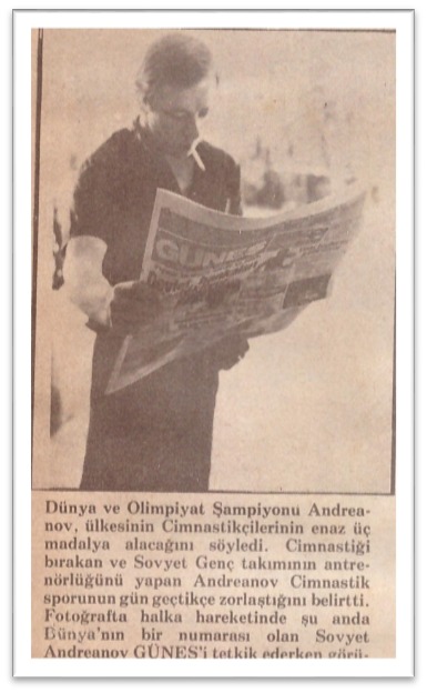 o zamanın Türkiyesinde Beyoğlu İstiklal Caddesinde bulunan Rus konsolosluğunun önünden geçmek, hatta konsolosluk binasının dış cemakanına konulan özellikle ünlü Cimnastikçilerin Fotograflarına bakmak bile cesaret isterdi, korka korka konsolosluğa gider cimnastik ile ilgili kitap, dergi, fotoğraflar ve özellikle sergilenen Rus cimnastikçi VORONİN’in fotoğraflarını isterdim. Aldımda .Yıllar sonra o adamla Türkiyede Ankarada Avrupa Gençler Cimnastik Şampiyonasında Rus takımının başında antrenör olarak geldi ve yüzyüze geldik ve bunları ona lisanı münasiple anlattık, çok güldü...kendisi ile bir söyleşi yaptık ve gazetede yayınlandı.