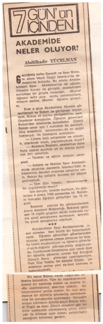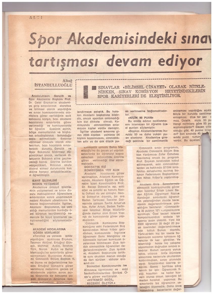Akademi sınavları da ayrı bir tartışma konusu oldu ve bu sınavları da bizim gözümüzden ve gözetimimizden kaçırarak, beni de sınav salonuna almayarak yaptılar. Cimnastik sınavlarının başındada Nihat Hoca bulundu. sınav sonucu tam bir siyasi facia oldu.