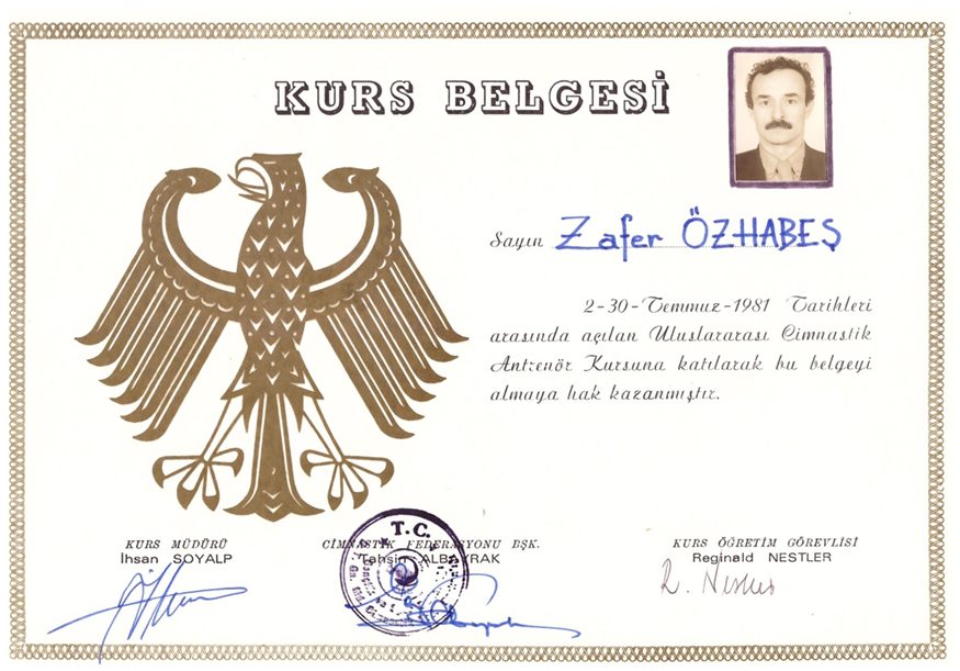 2-30 Temmuz 1981 yılında açılan ve Reginanld VESTLER tarafından verilen ULUSLARASI ANTRENÖRLÜK kursuna katılarak, belge aldım, ancak bu belgede kursun hangi kentte açıldığı yazılmamış.
