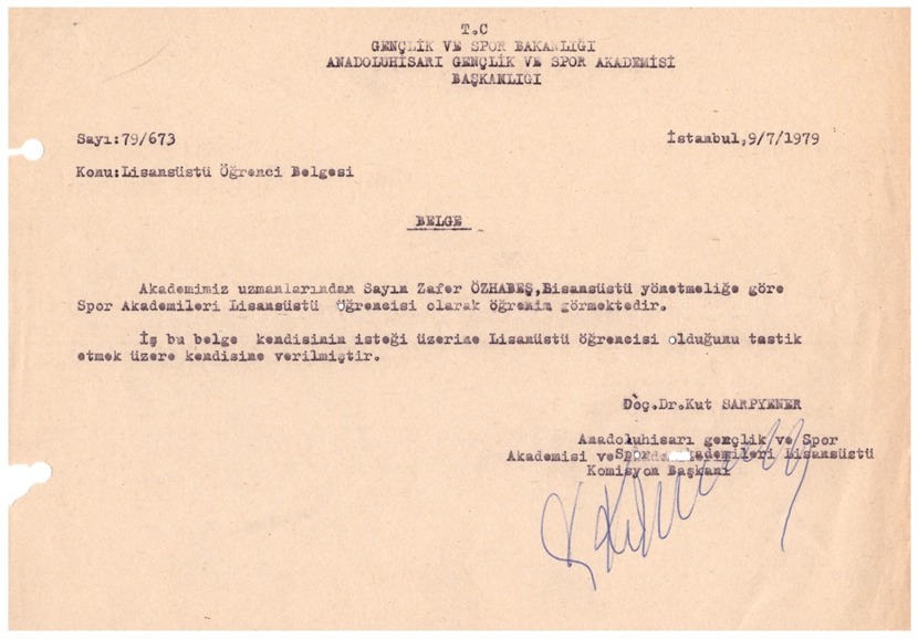 1. zarf benim Ankara Spor Akademisine tayin edildiğimi yazıyordu