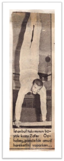 Tunga İPEK, Tansu ŞENGENÇ, Göksel TANRISEVER, ve benim gibi çömezlerin yanında Ablalardan Feriha GELEN, Gönül ERCAN, var, herkes Nihat Hoca başkanlığında çalışıyor, ben de en çok yer cimnastiğini seviyorum ama gözüm aklım hep Barfikste. Çöp adam fırıl fırl dönerde ben dönemezmiyim, Nihat hocanın gözünden kaçamak barfikse çıktım dönmek için açılmamla birlikte başım döndü, elim kurtuldu, ilk yere çakılmam böylece gerçekleşti. O zaman anladımki akıl ile fiziki yeterlilik arasında bir bağ olması gerekiyormuş.