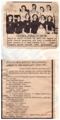 • Bu arada İstanbul Gelenbevi ortaokulunda 19 mayıs gösterileri yapardık, aynı zamanda Gelenbevi ortaokulu cimnastikçilerinİ çalıştırırdım, Okulun Öğretmeni Nejat CANSIZOĞLU nun çok büyük emekleri vardır.İlk yarışmamız olan Konyaya bizi Cansızoğlı götürmüştü. Oktay CANBULAT ile ilk tanışmamız orda oldu, onların içinde bir de Ahmet BAŞ, ve sonra basın emekçisi olan Yalçın TÜRK vardı. Ordaki çalışmalar epey eğlenceli olurdu.